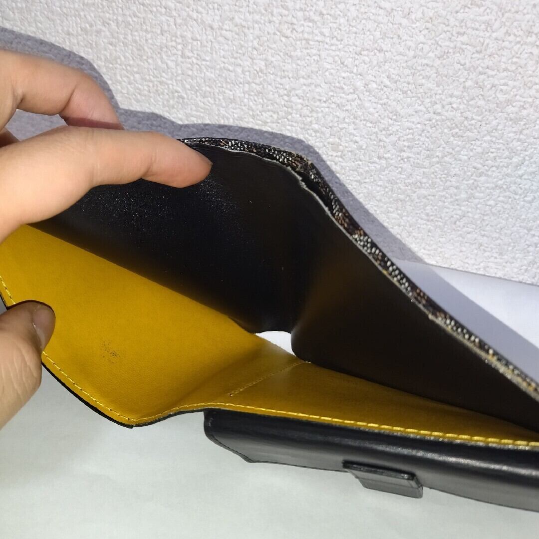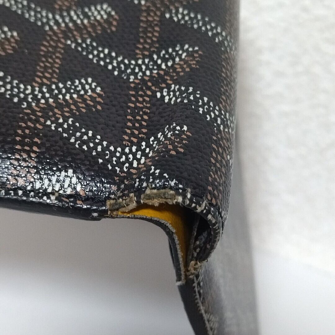 【美品】ゴヤール ヘリンボーン PVC×レザー 二つ折り財布 ブラック×ブラウン ST251120a21945
