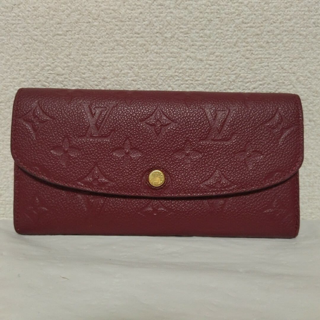 【美品】ルイヴィトン モノグラムアンプラント ポルトフォイユエミリー レザン ボルドー 二つ折り財布 M62015 ST251002b17325