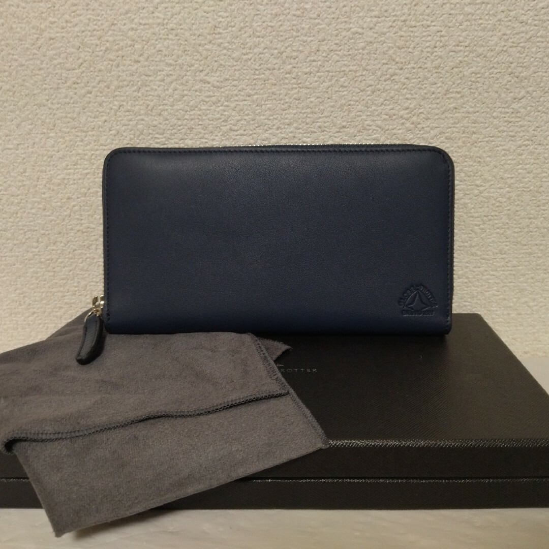 【極美品】グローブトロッター ネイビー ラウンドファスナー 長財布 レザー シルバー金具 ST240000a9933