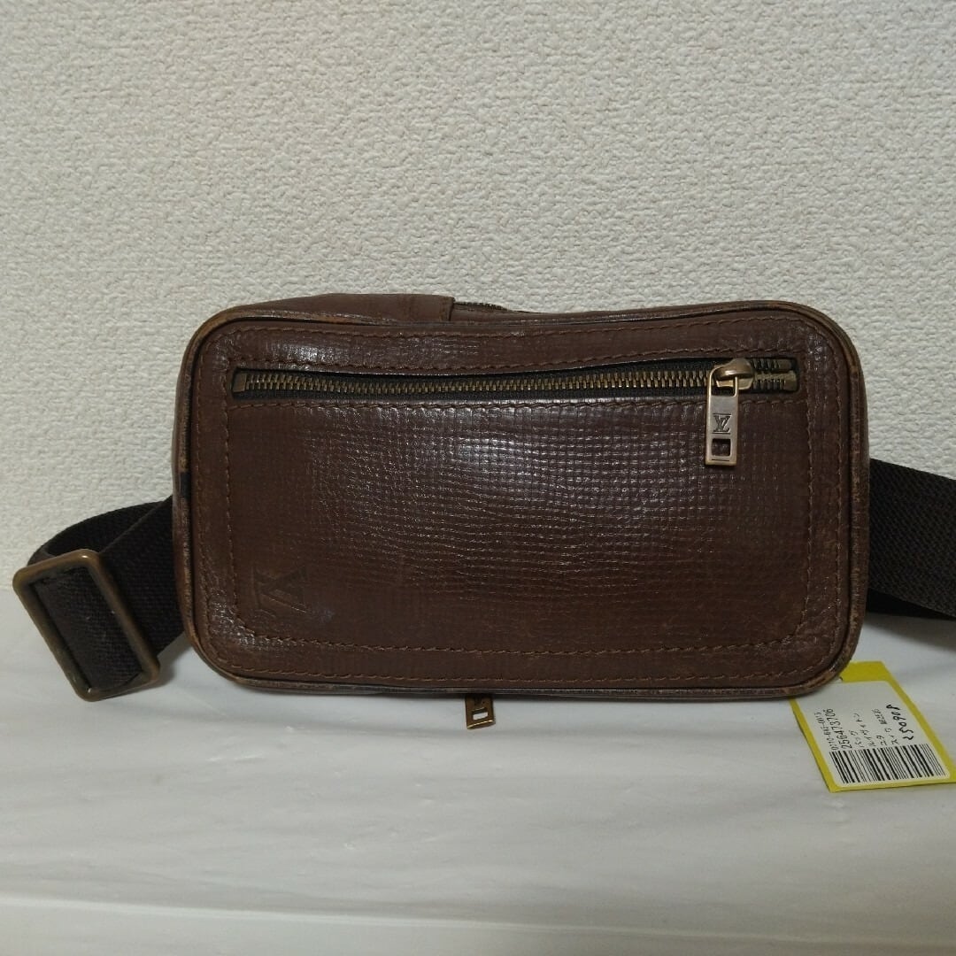 LOUISVUITTONのボディバッグです。もともと両開きですが片側欠損によりシングルファスナーになっています。古物オークションで仕入れた確実正規品です。