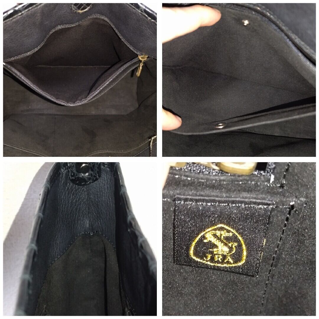 【美品】クロコダイル JRA認定 国産 ショルダーバッグ ハンドバッグ センター取り ブラック