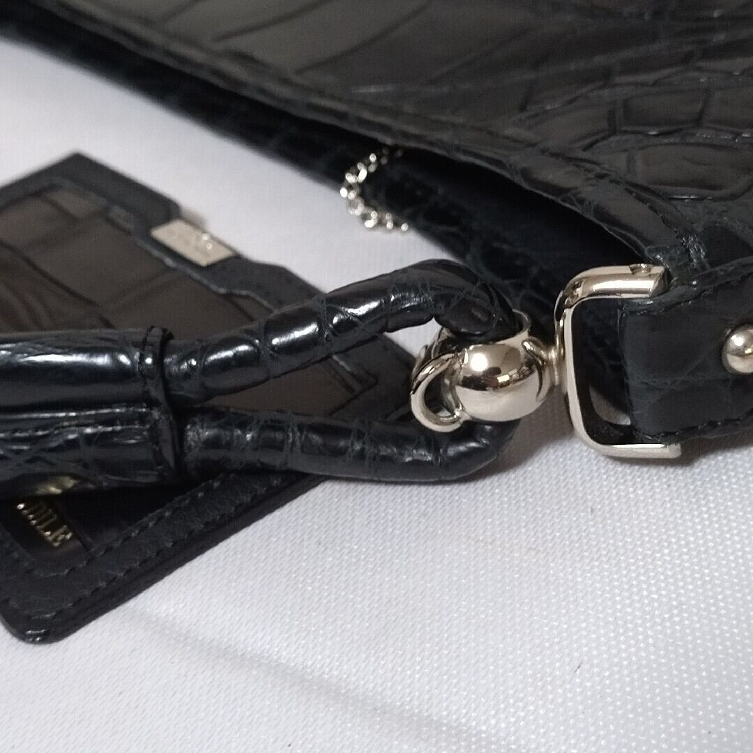 【美品】クロコダイル JRA認定 国産 ショルダーバッグ ハンドバッグ センター取り ブラック EC251112b11550