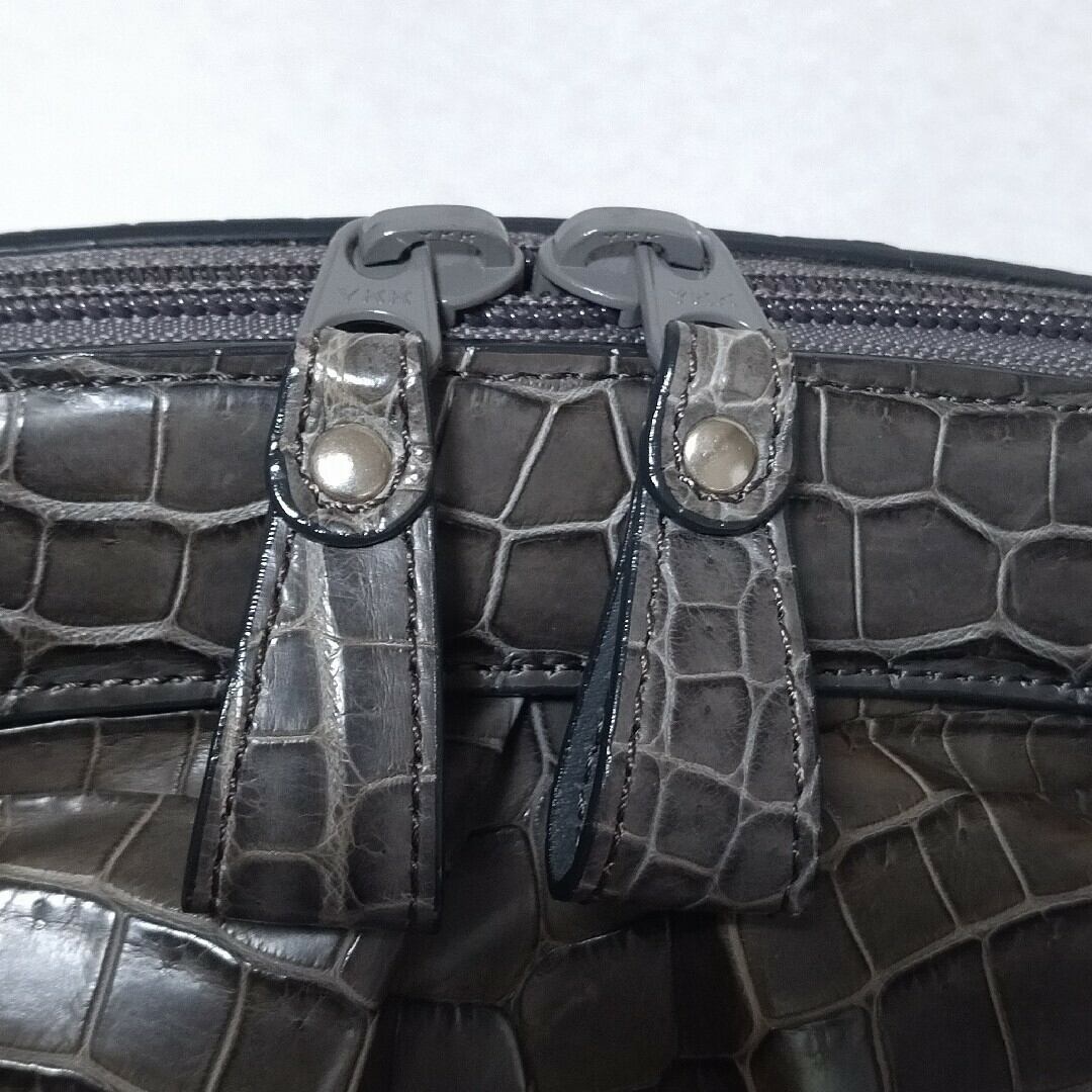 【美品】クロコダイル JRA認定 国産 トートバッグ ショルダーバッグ ハンドバッグ センター取り グレー EC251029a8250